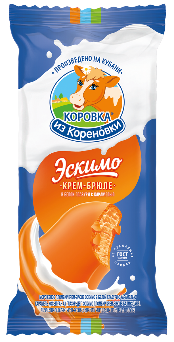 Состав: сливки, сироп крем-брюле (молоко цельное сгущенное с сахаром, сахар), белая глазурь с карамелью (сахар, масло какао, карамелизованный порошок с молочным жиром (сухое обезжиренное молоко, сухая молочная сыворотка, сахар, обезвоженный молочный жир, натуральный ароматизатор ваниль), сухое цельное молоко, карамелизованный сахар, эмульгатор соевый лецитин, соль, натуральный ароматизатор ваниль, кокосовое масло),молоко концентрированное обезжиренное, сахар, смесь пищевых эмульгаторов и стабилизаторов (эмульгатор: моно- и диглицериды жирных кислот, стабилизаторы: камедь рожкового дерева, гуаровая камедь, каррагинан).