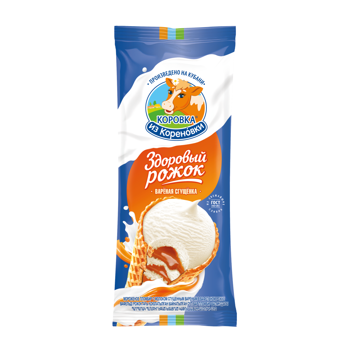 Состав: сливки, вафельный сахарный рожок, молоко сгущенное с сахаром вареное, глазурь, молоко концентрированное обезжиренное, сахар, молоко цельное сгущенное с сахаром, масло сливочное, комплексная пищевая добавка (эмульгатор: моно- и диглицериды жирных кислот, стабилизаторы: камеди рожкового дерева и гуаровая, каррагинан), ароматизатор ванилин. Состав вафельного сахарного рожка: мука пшеничная хлебопекарная, сахар, масло кокосовое, клетчатка пшеничная, эмульгатор соевый лецитин, вода, ароматизатор «Ванилин». Состав глазури: сахар, какао тертое, какао-масло, обезвоженный молочный жир, масло кокосовое, эмульгатор соевый лецитин, ароматизатор ванилин, эмульгатор Е 476.