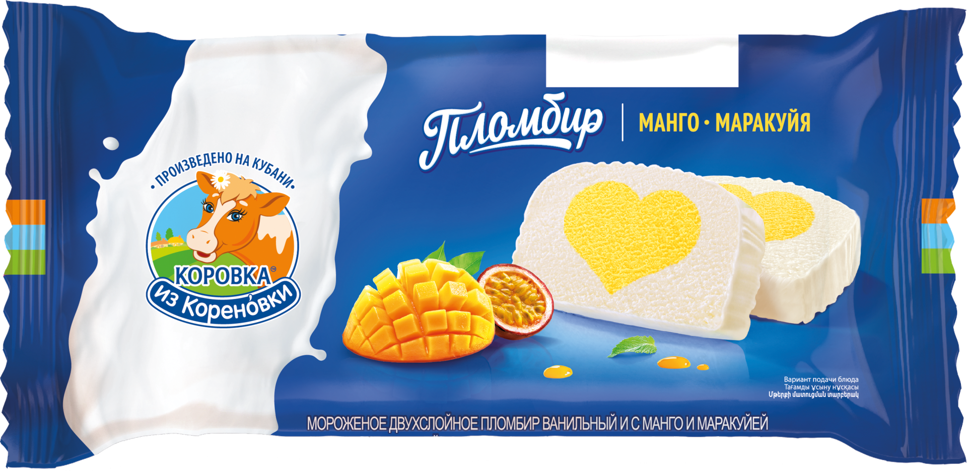 Состав: сливки, молоко цельное сгущённое с сахаром, молоко концентрированное обезжиренное, сахар, молоко обезжиренное, пюре манго, пюре из маракуйи, масло сливочное, смесь пищевых эмульгаторов и стабилизаторов (эмульгатор: моно- и диглицериды жирных кислот, стабилизаторы: камедь рожкового дерева, гуаровая камедь, каррагинан), ароматизатор ванилин.