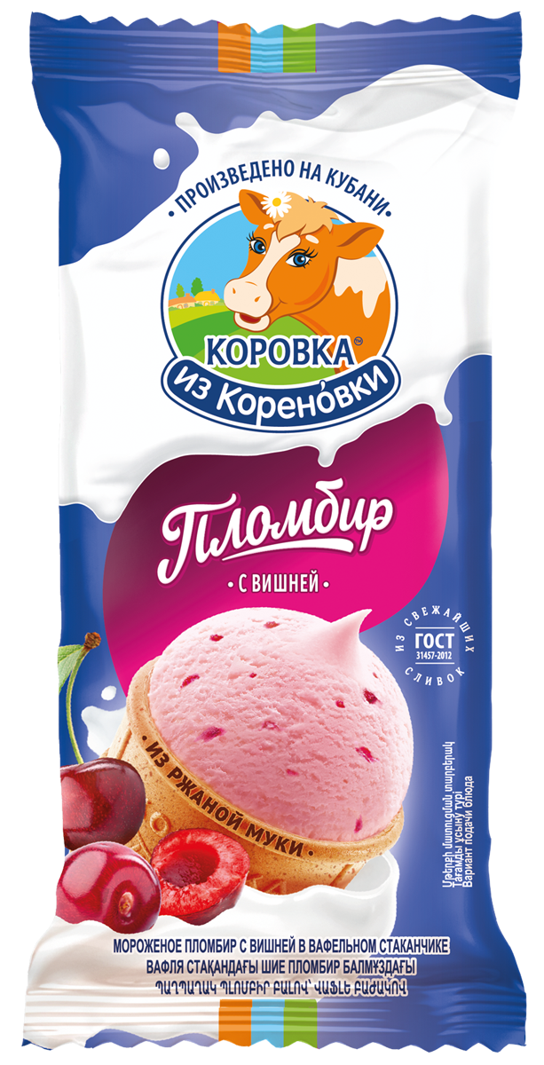 Состав: сливки, наполнитель фруктовый «Вишня» (вишня, сахар, сухой сироп глюкозы, вода, глюкоза, регуляторы кислотности (лимонная кислота, цитрат натрия 3-замещенный), ароматизатор натуральный (вишня), загустители (пектины, камедь рожкового дерева), краситель кармин), молоко концентрированное обезжиренное, сахар, молоко цельное сгущенное с сахаром, вафельный стаканчик (мука пшеничная хлебопекарная, мука ржаная хлебопекарная обдирная, вода питьевая, крахмал картофельный, масло кокосовое рафинированное дезодорированное, концентрат квасного сусла сухой (солод ржаной ферментированный, солод ржаной не ферментированный, ржаная мука), пищевые волокна пшеничные, эмульгатор соевый лецитин, разрыхлитель: гидрокарбонат натрия (сода пищевая), соль, улучшитель для вафель «Ржаной вафельный стаканчик»), масло сливочное, смесь пищевых эмульгаторов и стабилизаторов (эмульгатор: моно- и диглицериды жирных кислот, стабилизаторы: камедь рожкового дерева, гуаровая камедь, каррагинан), ароматизатор ванилин.