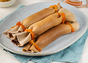 Груши выложить на тарелку, полить сиропом. В серединку выложить немного сгущенного молока с какао. Украсить рубленными фисташками.