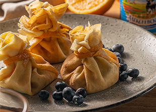 В кипящую воду добавить щепотку соли и сахара, добавить наши заготовки. После всплытия варить еще 5 минут. Горячее блюдо полить сгущенным молоком и добавить сезонные ягоды.